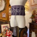 名古屋帯 リメイク サッシュベルト 飾り帯 和洋折衷 ハンドメイド レトロ 古着 L〜LL対応 濃紫の格子 ROB-202