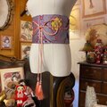名古屋帯 リメイク サッシュベルト 飾り帯 和洋折衷 レトロ 古着 L〜LL対応 葡萄の深淵 × 瑠璃の銀花 ROB-203