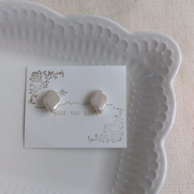 14kgf ひし形お花の淡水パールピアス