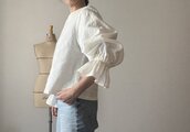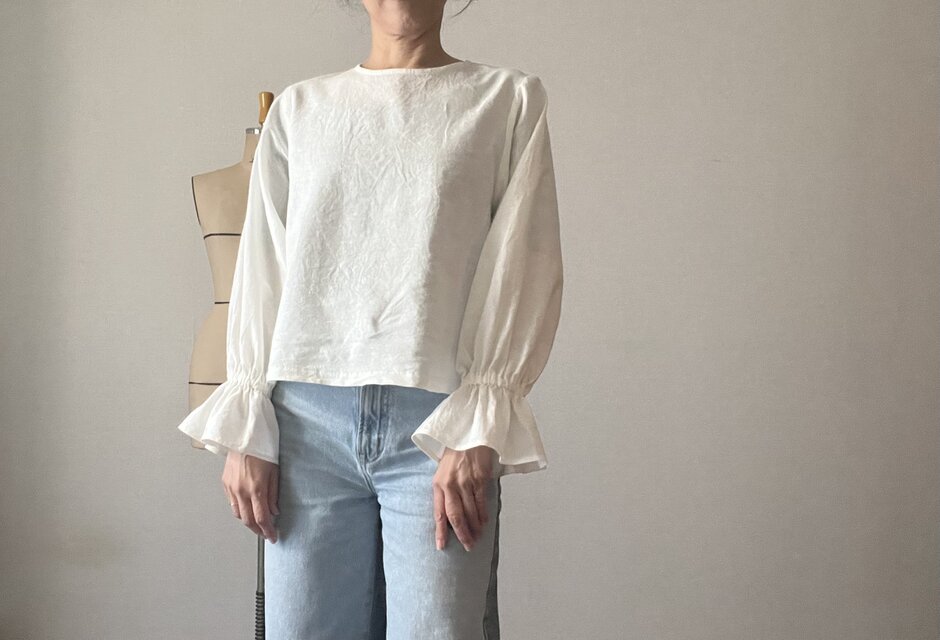 さらりと上品なリネンを使いお袖口にデザインされたブラウスをお仕立てしました