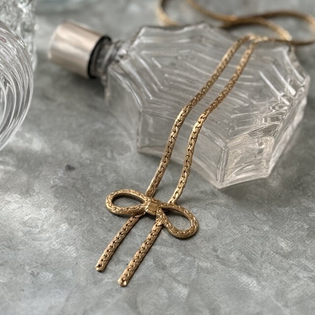 NA160-【 AVON 】エイボン・ヴィンテージネックレス Textured Gold Tone Ribbon