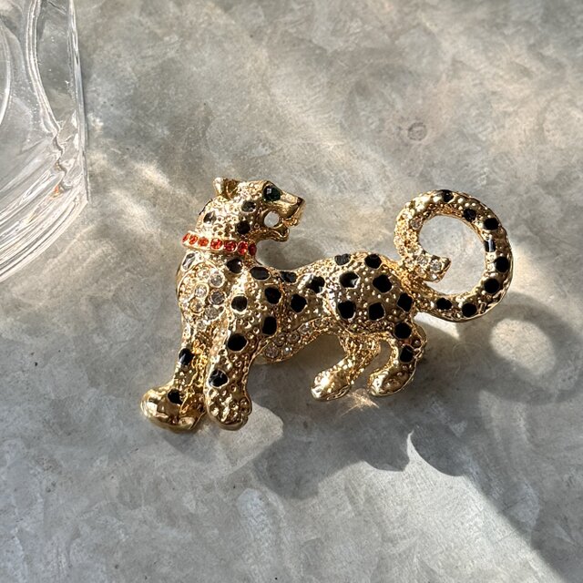 ゴールドトーンのパンサーモチーフのヴィンテージブローチ。