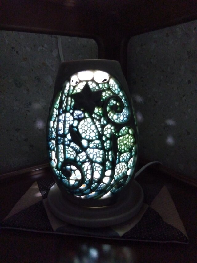 ガラス釉薬でガラスと陶器を融合させた作品です