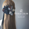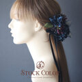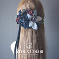 ブラック×ブルーの和モダンカラー♪トレンドのスエードリボンとオーガンジーリボンが入ったヘアパーツセットは、ウェディングドレスやカラードレス、成人式や袴、カラードレスなど、洋装和装にお使いいただけます。