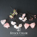 ガーリーなピンクのオーガンジーとレースリボンを、ふんわり咲いた桜と組合せたヘアパーツセットは、ウェディングドレスや白無垢、成人式や袴におすすめです♪