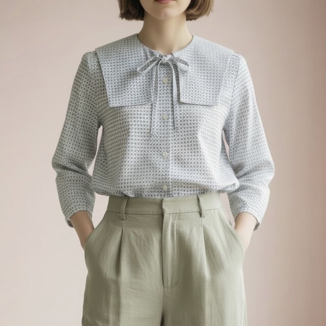 バンドカラーのブラウスに仕立てました