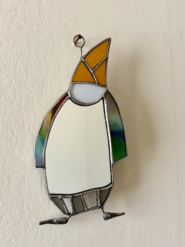 ステンドグラス工法で作ったピエロの壁掛け鏡です。