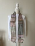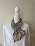 母と姉たちへのプレゼントと自分用に買わせてもらいました。各々好きなものを選んでもらう楽しい企画を考えました。それぞれの好きそうな色合いを選びました。選ぶのも楽しかったです。春先,これをつけると、気分が上がりそうです。 素敵なマフラーをありがとうございました。