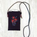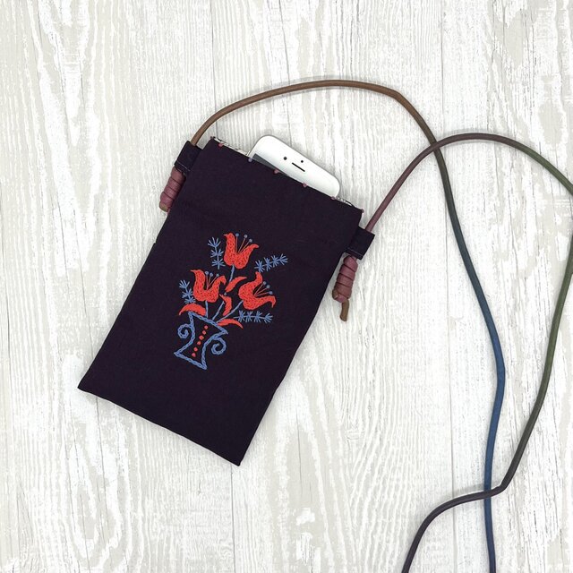 手刺繍スマホショルダー ユリ花瓶