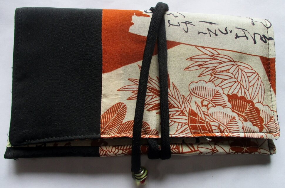 8649 長襦袢と黒羽織で作った和風財布・ポーチ