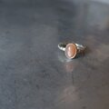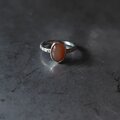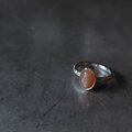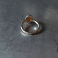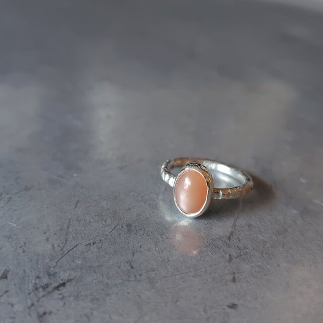 肌馴染みの良い落ち着いたオレンジにシルバーホワイトのシーンとキャッツアイが美しいオレンジキャッツアイムーンストーンシルバーリングに仕立てました。