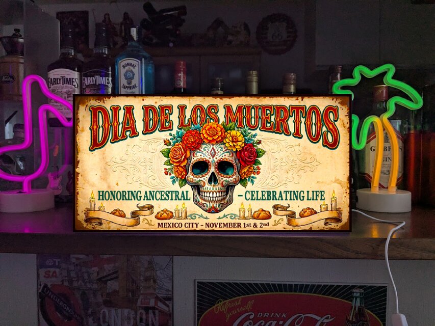 【オーダー無料】メキシカンスカル カラベラ 死者の日 ドクロ レトロ 店舗 自宅 照明 看板 置物 雑貨 ライトBOXのコピー