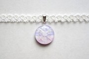 【受注製作】レジンアート ラウンドモチーフとタティングレースとサテンリボンのチョーカー〈紫雲①〉20㎜