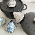 重ねてお鍋の蓋の持ち手に乗せておいても可愛いです。