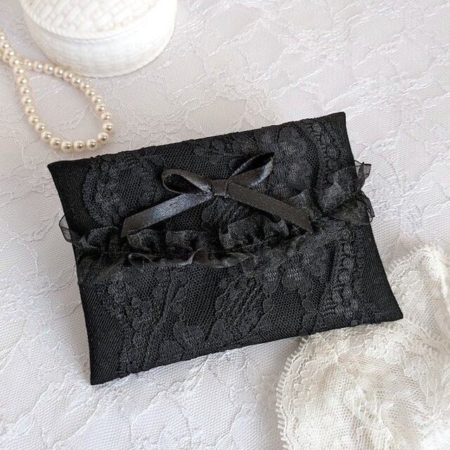 #ポケットティッシュケース #ティッシュケース #ブラック #黒 #リボン #レース #フリル #大人可愛い #上品 #ギフト #フォーマル