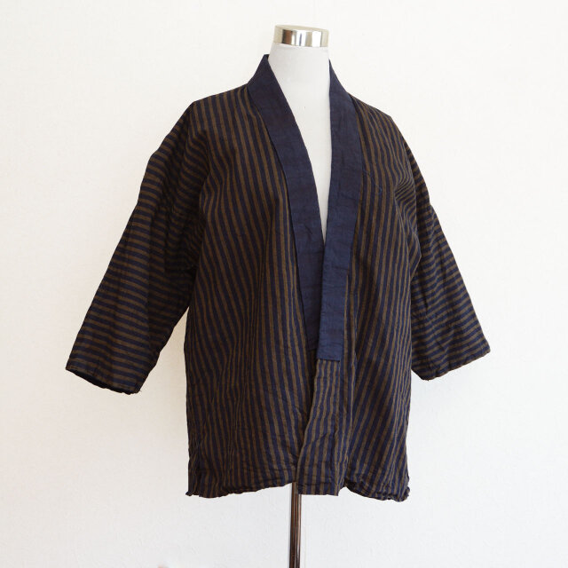 特に特徴的なのは、一般的な縞よりもピッチが太めのストライプで、素朴ながらも力強い印象を与える魅力的な柄です。