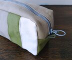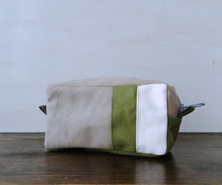 ワケあり 帆布の男前なボックスポーチ F25-ベージュカーキ白
