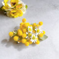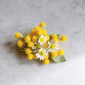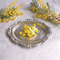 胸元にそっと咲く、春の花ミモザ。