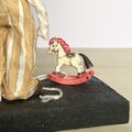 足元には小さな木馬のおもちゃ。