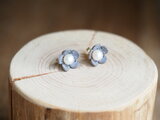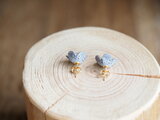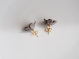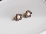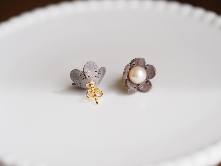 小さな革の小花と淡水パールのピアス