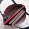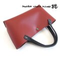 ◎落ち着きがある赤茶色のマルーンカラーのスムースレザーにネイビーのハンドルとステッチで柔らかな雰囲気に仕上げています。(^^/