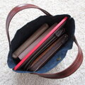 ◎薄くて軽いネイビーのウォッシャブルレザーにしなやかなブラウンのハンドルを合わせました♪