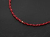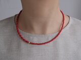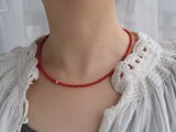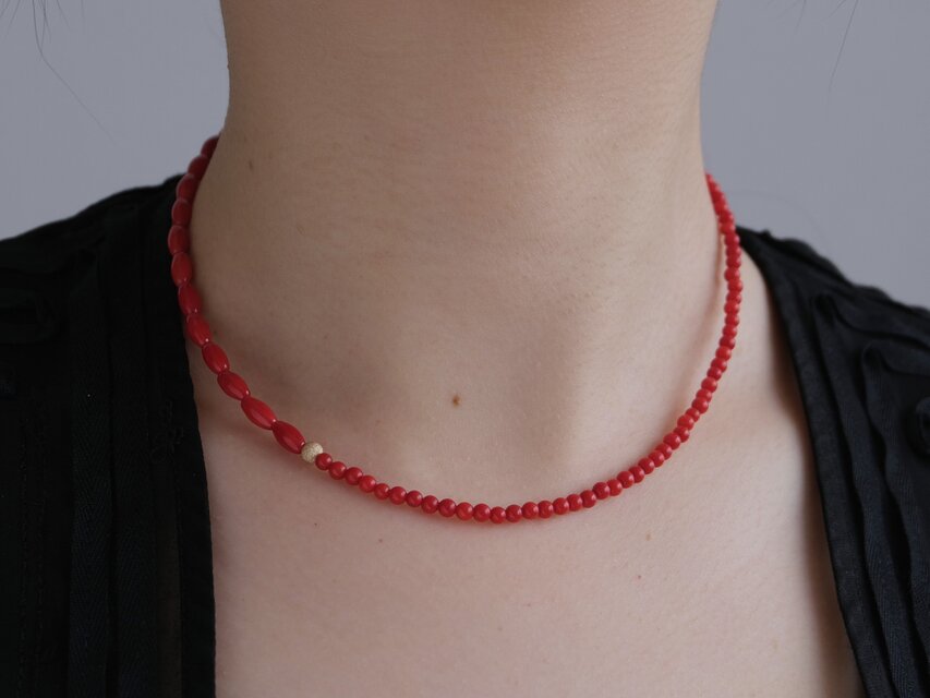 お洋服に合わせやすく、シンプルにTシャツに合わせるだけでも、コーディネートにこなれ感を出せるレッドカラーの染珊瑚のネックレス。