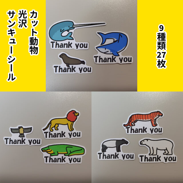 光沢紙を使用した動物のサンキューシールを作ってみました。