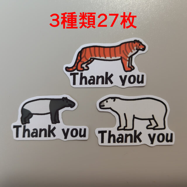 カット動物 光沢サンキューシール セットC 3種類27枚
