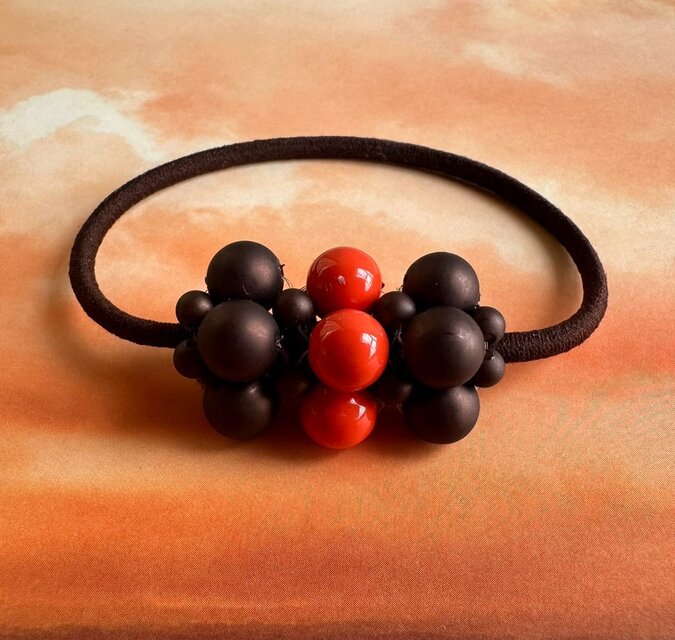 オレンジ色とチョコレート色を合わせたスイートなヘアゴムです。