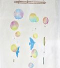フワフワと空を舞うしゃぼん玉を眺めていると穏やかで優しい気持ちになります。そんな優しい風の中を2羽の鳥たちが気持ちよく翔んでいます。まるで、追いかけっこをするように、仲良く翔んでいます。そんなイメージでこのモビールを作りました。