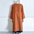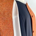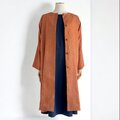 ノーカラー コート【送料込み】着物リメイク 裏地付き オレンジ