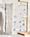 ネモフィラは爽やかで優しいブルーに。花びらの中心部にはビーズを。サイズに少し変化を付けて、そよ風に乗ってリズミカルに咲いている様子を表現しました。