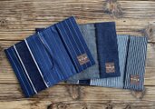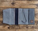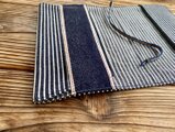 上級のデニム生地を使用していることもさることながら、セルビッチの赤耳部分を押さえの紐に使用したり、倉敷市児島の伝統の真田紐をしおりに使用したりと贅沢なアイテム。