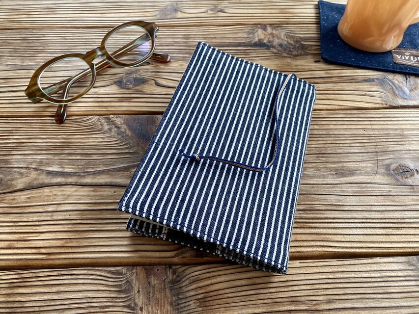 岡山セルビッチヒッコリーデニムと倉敷真田紐のブックカバー