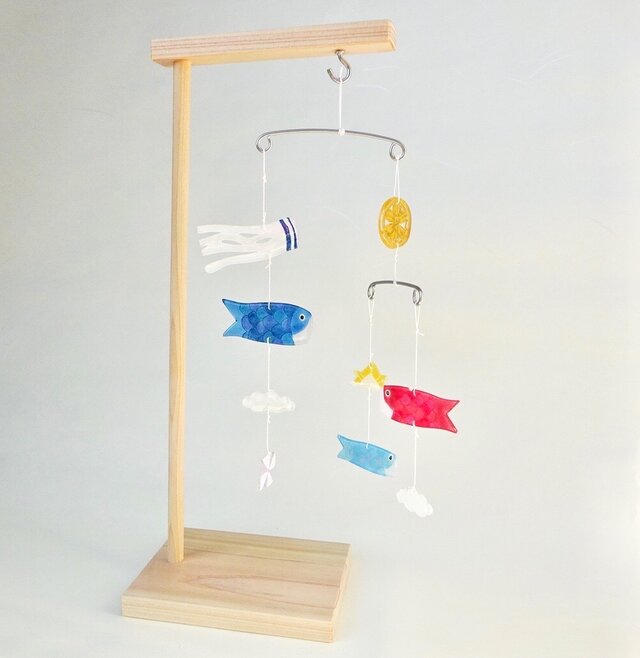 卓上で楽しめる小さな鯉のぼりのモビールです。