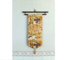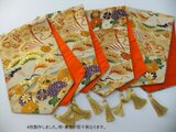 華やかな色合いで目を引く文様です。裏側は帯の中無地(正絹)を使用し金色のタッセル飾りを付けました。4点製作し柄・裏地の色は若干異なります。この様な美品のアンティーク帯は数に限りがございますので貴重です。