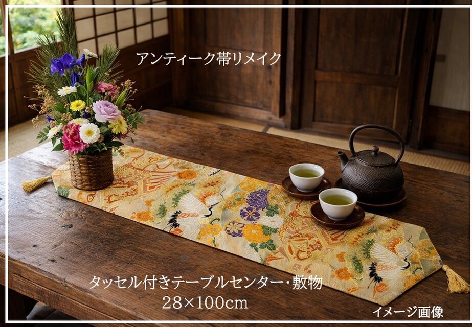 【(16)2011】94cm/流水花車文様/テーブルランナー/和風/帯リメイク返信遅くなり申し訳ありません。素敵なお品をありがとうございました。また機会がありましたら宜しくお願いいたします。