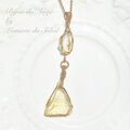素敵な作品をありがとうございました♡ 陽にかざしてみると、 コズミックアイスはキラキラ輝いて✨ダイナミックヘリオドールは黄色から金色に色を変えて、そして小さな虹を2つも見せてくれました すごく綺麗です✨✨ 大切に身につけさせていただきます♡ また丁寧な気持ちの良い対応をしていただきましてありがとうございました(*^^*)