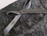 ブラックの生地にレースを重ね、中央に小さなリボンを添えて
