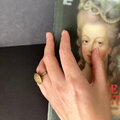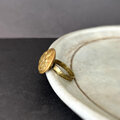 いぶしと槌目仕上げを施してボタンが過ごしてきた年月を指輪に宿しました