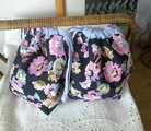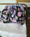 *色 黒地にピンク・ブルー・ブラウンの花々