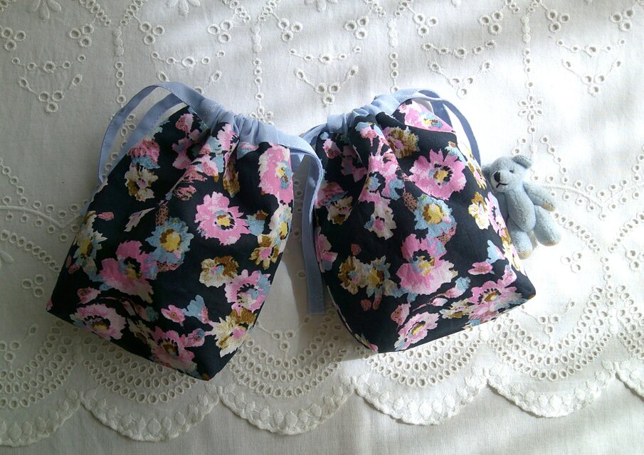 コットンとリネンの巾着ポーチです。