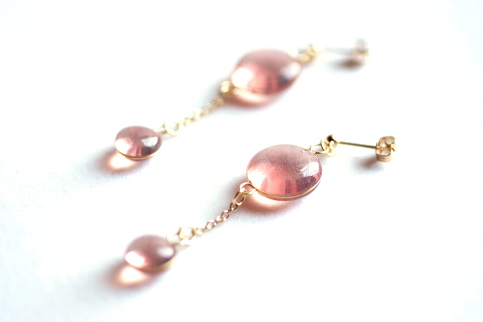 ぷっくり張りつめた大小の水滴のようなレジンの透明感に魅入ってしまうピアス。