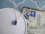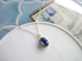 青く透き通った天然石はブルーカイヤナイト。オーバルカットで光が入ると奥行きのある輝きを見せてくれます。縦長のオーバルはフェイスラインをすっきりと見せてくれることからひそかに人気があります。小粒ならではの気品があります。