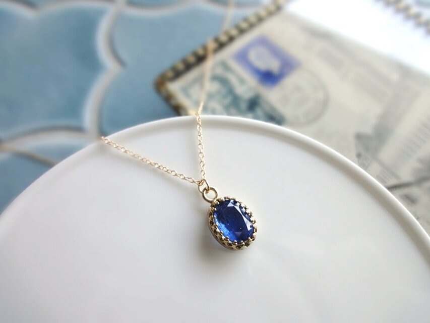クラウンシリーズ ■ プチペンダント 14KGF ネックレス ■ 小粒オーバルカット カイヤナイト