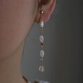 ラフなカットのクオーツとロングデザインで洗練された印象に。繊細さもありつつ鮮やかなブルーやオレンジカラーは力強く存在感を放ちます。