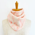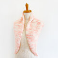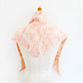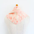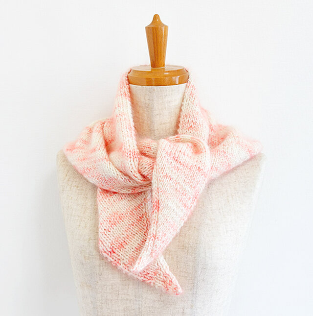 カンパリ色のシルクモヘアとミルク色のウールで編んだ三角形のマフラーです。とても柔らかく、明るく優しい色味が顔色をパッと明るくしてくれます。