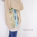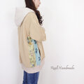 [予約販売] ミルクティーベージュとボタニカル刺繍のサイド切替パーカー│お花見 ドライブ お出かけ コットン 旅行
