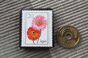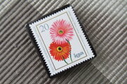 切手の中のお花を見て春の到来を待っているところです。いつも素敵なブローチをありがとうございます。